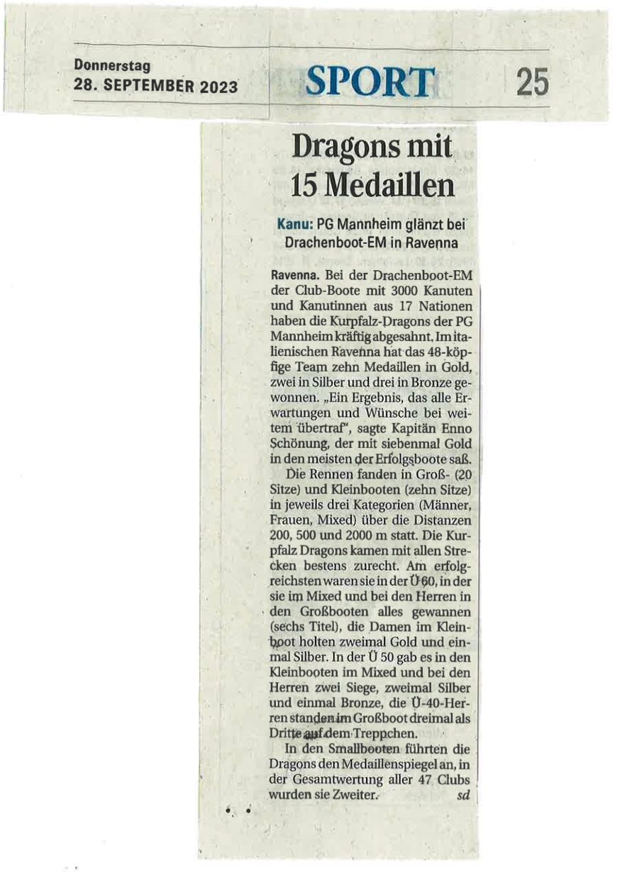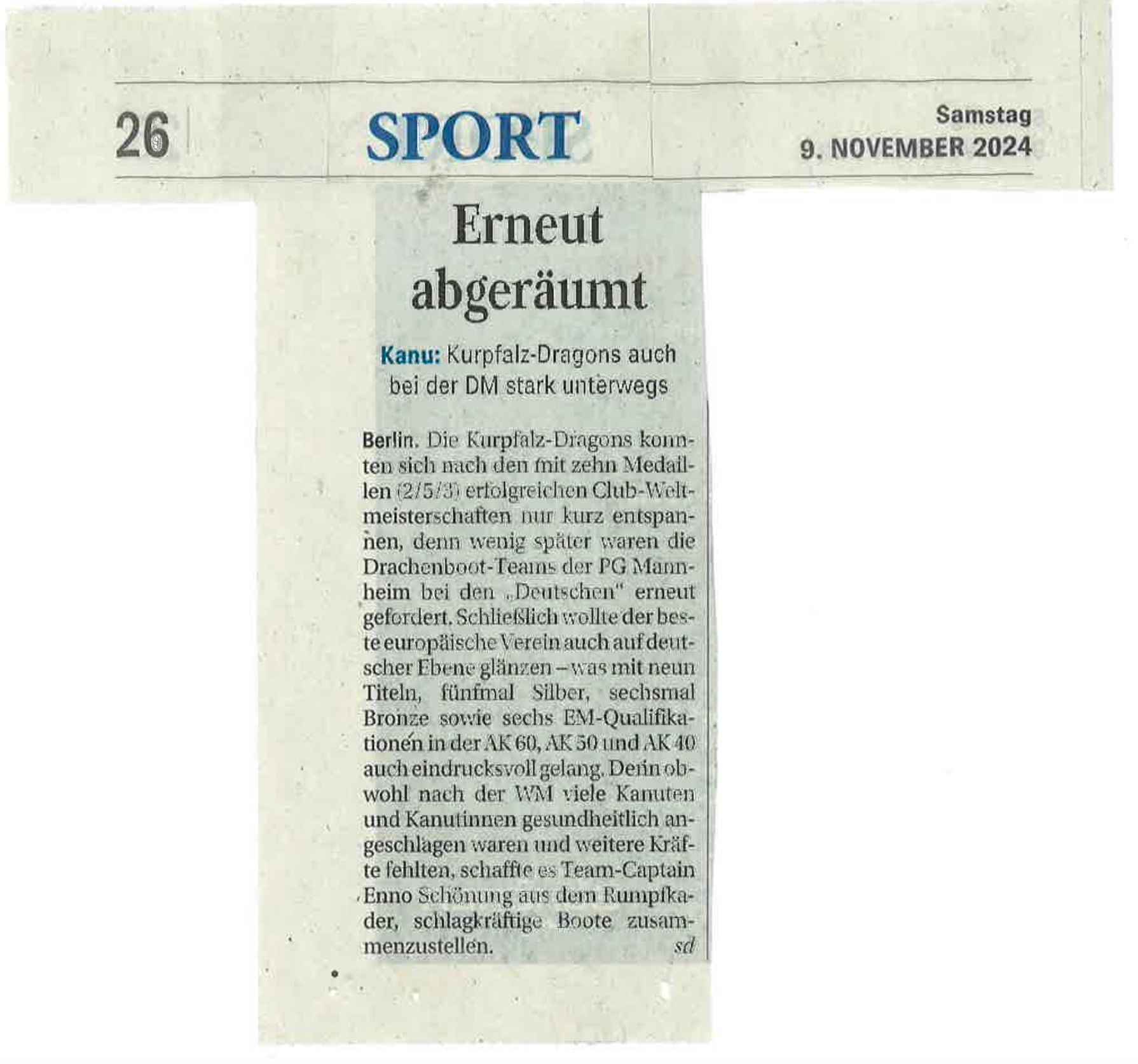 " " - jeden Samstag - Drachenboot, Treffen 14:30 Uhr ( außer es ist ein kleines oder großes TL eingeplant )